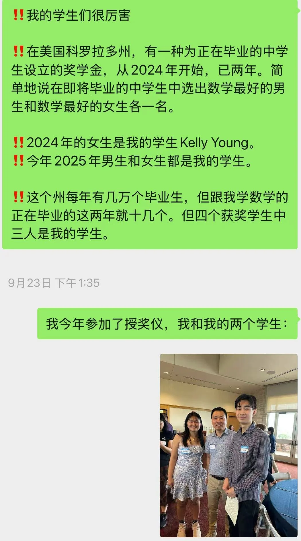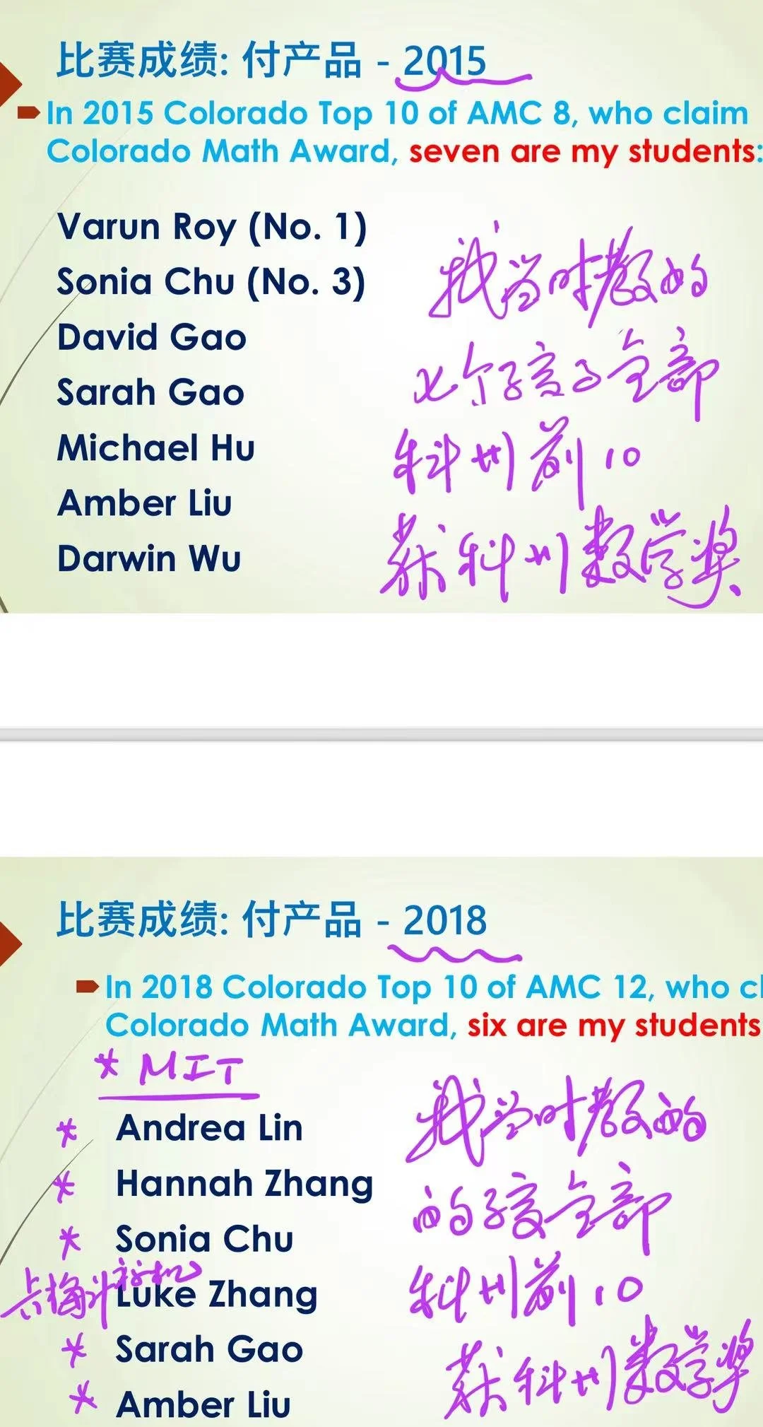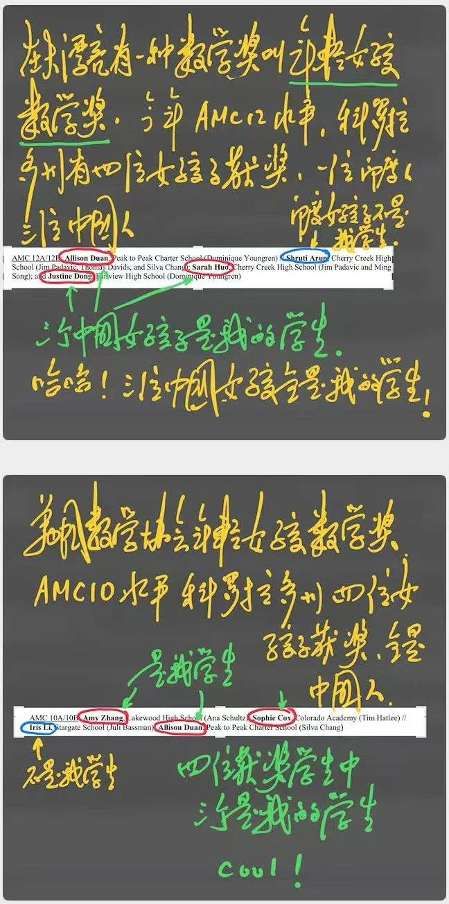 在科罗拉多州,我的7个学生AMC 8全部前10获科州数学奖;我的6个学生全部AMC12前10获科州数学奖