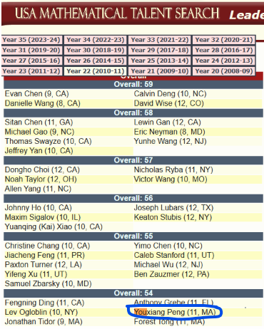 Home 我教数学部分起始于纽约长岛。2004年,我有个博士班同学在长岛,他邻居两个孩子(姐弟)喜欢数学,由于我同学,他邻居的妈妈找到了我,让我教她两个孩子数学。那一年,我有三个孩子(一个从西雅图,两个从长岛)暑假住我家跟我学数学。 弟弟获得USAMTS全国第31名 住我家学数学的三个孩子Jennifer:上哈佛;Belle,上Wellesley, 录取MITDidi:上Dartmouth 后来我又教过几个长岛的孩子Amelia:普林斯顿Bryan: 哥伦比亚Riechee: 康奈尔Austin: 耶鲁 我指导四个孩子参加长岛MathFair,两枚金牌,两枚银牌。